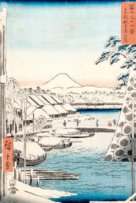 На обложке представлена гравюра Утагавы Хиросигэ «Мост Тайко в Мэгуро заснеженным вечером».