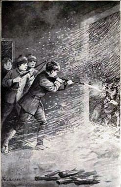 "BANG! BANG! BANG! WENT THE GUNS IN THE HANDS OF GIF, RANDY, AND SPOUTER."