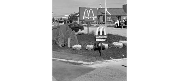 Дальше стало только интереснее. Выскочив из машины — на этот раз без трости — человек с коробкой под футболкой резво подбежал к фирменному указателю «Мс'Donalds’а» и принялся что-то лихорадочно искать у его основания. Мамаша-негритянка, продолжавшая разговор с диспетчером службы «911», сообщила, что странный человек вытащил из-под камня лист бумаги, после чего вернулся к своей машине.