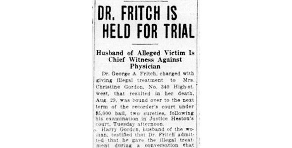 На протяжении нескольких месяцев окружной прокурор пытался «склеить» дело в отношении Фритча. Получалось не очень хорошо — никаких прямых улик, доказывающих факт проведения криминального аборта в кабинете Фритча, не существовало. Фамилия врача называлась преподобным Уордом, но сам Уорд находился вне досягаемости Закона и ни разу не был толком допрошен. Да и допрос его, в принципе, мало мог помочь прокурору, поскольку человек, который официально признавался перенёсшим инсульт, мог отвести все неудобные вопросы ссылкой на потерю памяти. Сам же Фритч молчал, продолжал потихоньку зарабатывать деньги и смотрел, куда же в конечном итоге забредёт следствие.