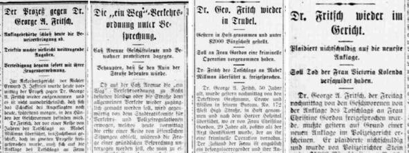 9 сентября в местных газетах уже вовсю обсуждался вопрос об обоснованности подозрений в отношении доктора Фритча.