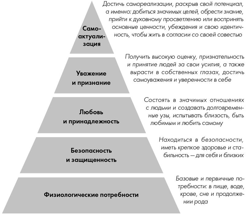 Согласно теории прославленного психолога Абрахама Маслоу, у каждого человека имеется пять уровней потребностей. Если все они удовлетворены, это дает ощущение полноты жизни и реализованности. Если одна из потребностей или более не удовлетворяется, это причиняет дискомфорт — сродни ряби на тихой воде. Когда этот дискомфорт усиливается или затягивается, у человека возникает желание исправить ситуацию, чтобы удовлетворить самую насущную нужду.