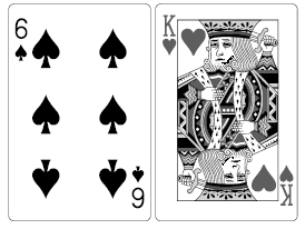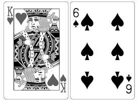 При такой комбинации мы говорим о том, что 6 Пик перед Королем Червей, или 6 Пик идет из-под Короля Червей:
