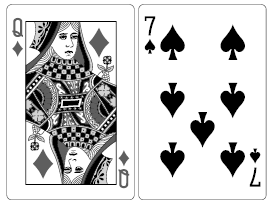 Так, в данном случае мы уже не можем говорить о том, что 7 Пик при Даме Бубен, в данном случае при Даме Бубен легли 8 Червей и 6 Бубен:
