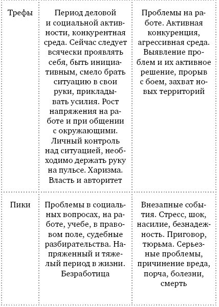 Пики с Трефами – наложение в раскладе черных мастей может указать на проблемы с законом и властями, которые могут обернуться лишением свободы, также идут болезни, травмы, психические расстройства. Проблемы в деловой сфере, на работе, понижение в статусе, увольнение, безработица, сложности в имущественных вопросах, с авторским правом.