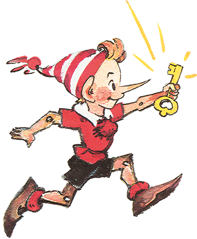Толстой выбрал из своей сказки самые интересные места и придумал коротенькие надписи, чтобы к ним можно было нарисовать много картинок про все необыкновенные похождения Буратино по порядку. Так получилась книжка-картинка о Буратино и золотом ключике. Алексей Николаевич очень хотел, чтобы у малышей, которые ещё только учатся читать, была такая книжка.