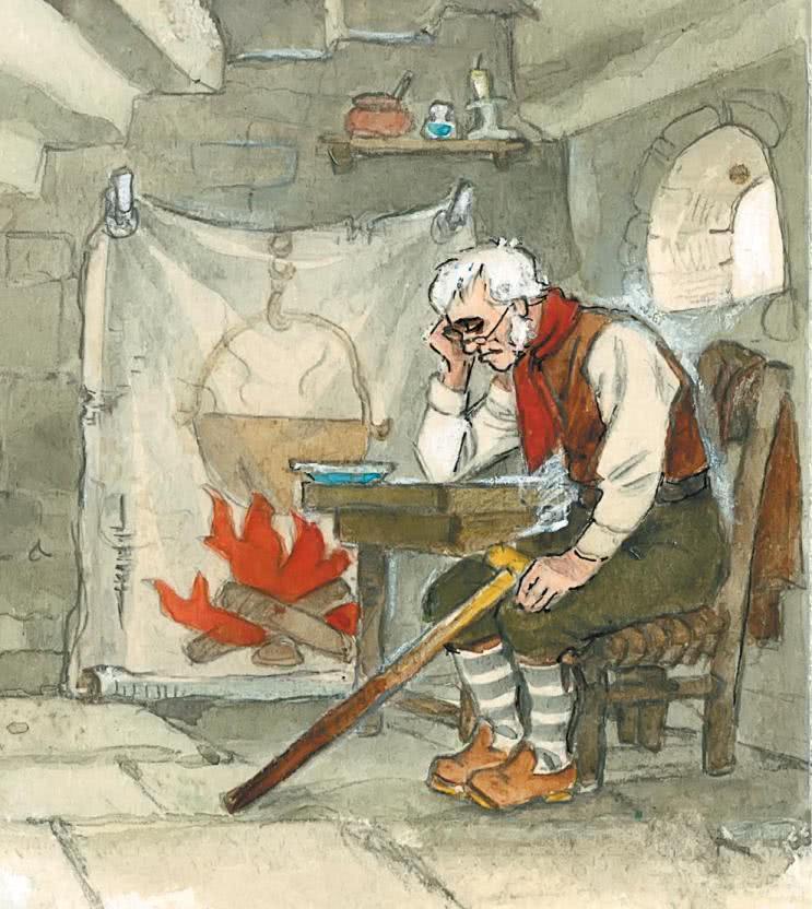 Карло жил в бедной каморке, у него даже очаг был не настоящий, а нарисованный на холсте.