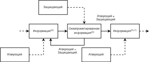 Всё вышеописанное, на первый взгляд, являясь положительным со стороны защиты информации, является на деле фиктивным, потому как нападающие неявным образом меняют свои векторы нападения, фрагментированно синтезируясь с защищающими. Плавное течение борьбы и единства атакующих с защищающими приостанавливается, как только появляется синтез средств массовой информации с компьютерными технологиями. Множеству атакующих становятся бессмысленны прямолинейные взломы (по крайней мере в гражданском секторе), как того требовалось ранее. Нападающие в новой парадигме постепенно разделяются на две категории, где первые всё так же продолжают противостоять более новым средствам защиты информации, выбирая путь классического криптоанализа и развития квантовых технологий [3], а вторые начинают выбирать путь взлома за счёт своего слияния со средствами массовой информации и её защищающими, становясь тем самым совершенно иной формой, отличной от примитивно атакующих и/или защищающих. Данная формация, являясь одновременно защищающей и атакующей стороной для одних и тех же лиц, не совершенствуется, как это было всегда ранее при обнаружении уязвимостей, потому как ей становится выгоден сам фактор системной незащищённости.