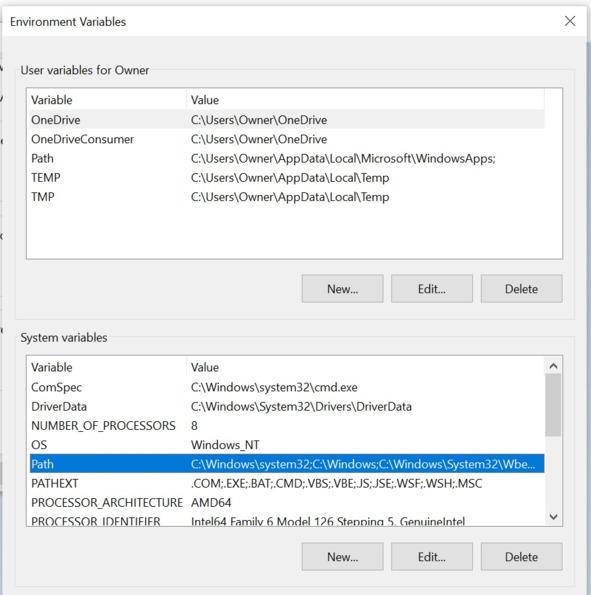 Редактирование системных переменных