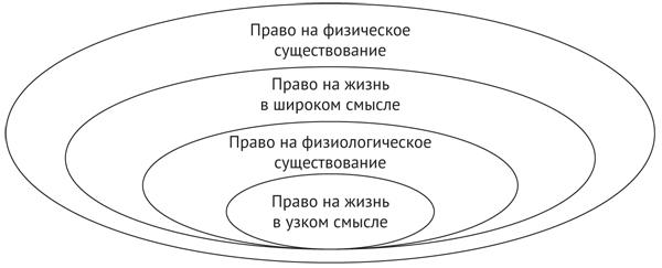Попытаемся схематично представить соотношение права на жизнь, права на физическое существование и права на физиологическое существование (рис. 2).