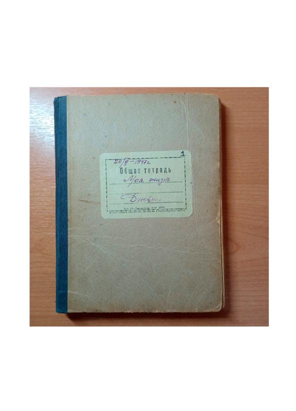 Дневник назван «МОЯ ЖИЗНЬ» и представляет собой две старинные общие тетради в линейку. Между линиями — две строчки красивого мелко-бисерного и хорошо читаемого почерка. Бумага очень грубая, с мелкими вкраплениями древесной стружки. Обложки сделаны из толстого картона, поэтому общий вид исписанной тетради напоминает, скорее, рукописную книгу в твердом переплете. На тетрадях отсутствует информация о дате изготовления и о количестве листов. Отец сам нумеровал страницы — по 212 в каждой, общий объем дневника — примерно, 1,8 тетради. Единственная информация — слегка кривая наклейка на лицевой стороне обложки с надписью: ОБЩАЯ ТЕТРАДЬ и мелкий шрифт в самом низу: тип.11-Ленинград. Арт. 2183. Изготовлено по заказу Ленбазы Главособунивермага.