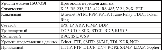 В табл. 4.1 приведены названия некоторых популярных протоколов и их положение в модели взаимодействия открытых систем.