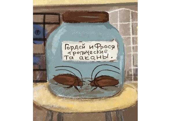 Внимание директора привлекла стеклянная банка с наклейкой: «Гордей и Фрося. Тропические тараканы». Хомячков наклонился, чтобы лучше рассмотреть содержимое: внутри прозрачного сосуда два больших, похожих на сушеные марокканские финики таракана длинными усами ощупывали хитиновые спинки друг друга.