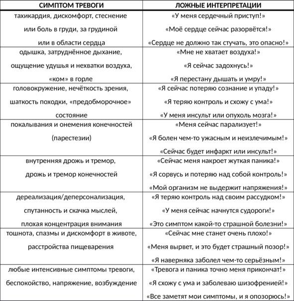 - Иррациональные убеждения об опасности симптомов тревоги