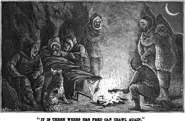 “We did not forget our own larder, you may be sure, and right thankful were we that we had not forgotten to take with us a traveller’s cooking stove, with a store of oil by way of fuel. Not that we expected an Arctic winter by any means. Our guide, a sturdy bearded man of some fifty summers, had trapped in these wilds for more than twenty years, and could remember many a winter passing without the grass being even once covered with snow. But travellers should always be provided against even probabilities, and as it turned out it was well we were. We enjoyed Christmas in our rude log hut almost if not quite as well as if at home, and it would have done your heart good to have heard the merry songs we sang, or to have listened to the strange stories of our guide. No traveller’s tales were these, they were painted from the life and natural. The wolves used to come howling round our doors now of nights. A fall of snow, that came on about the beginning of the new year, seemed to make the creatures hungry. They came after the bones that were thrown out, at least that was how they pretended to account for their visit, but we knew well they would not hesitate a moment to attack the horses if they could only find a chance.