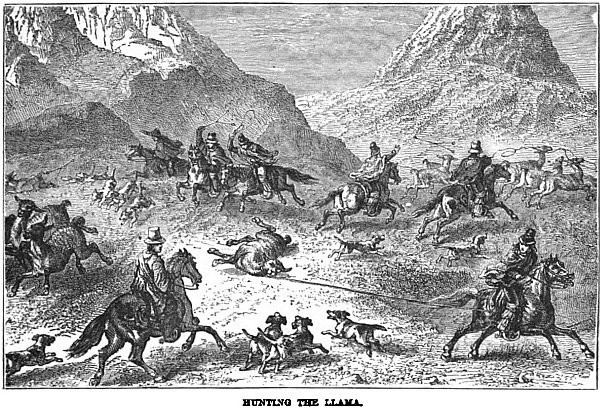 (The lama pacos, hunted for its wool, chiefly used in rope and cloth-making.)