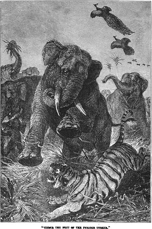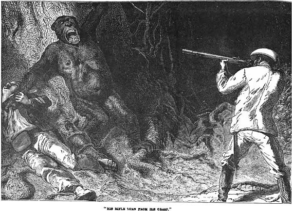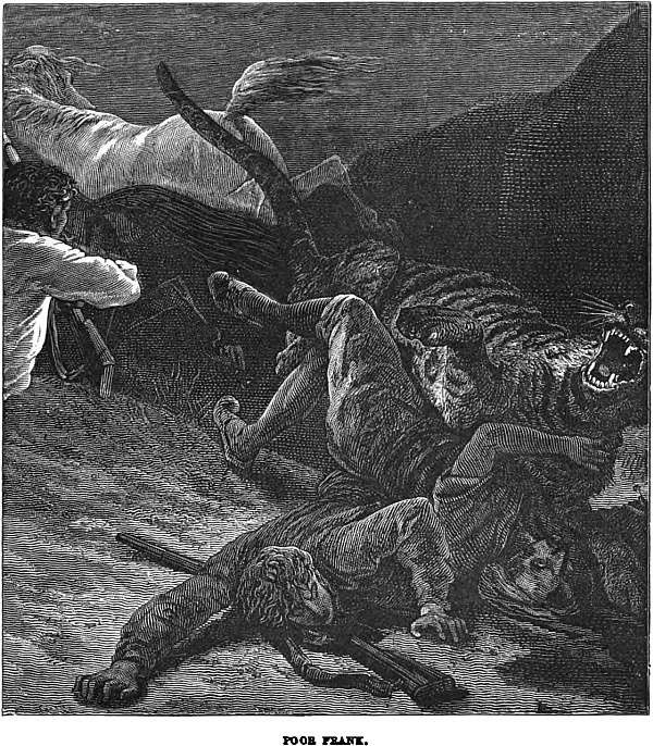 Frank trod on the tail of an iguana next day. The dragon, seven feet long, and fearful to behold, turned and snapped. Frank, armed with a stick, would not fly, but fought. The Scotchmen were delighted. They tossed their bonnets in the air, and shouted “Saint George for merrie England!” Never mind, they might laugh as they pleased; but Frank killed the dragon.