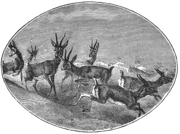 “Well, gentlemen, after this I was just as anxious to get away from England as Jack was, so we made our preparations; and in a month’s time we had crossed the wide Atlantic, and journeyed as near to the Rocky Mountains as cars would take us. I don’t think we had either of us any very definite notion of what we should do, or what adventures we should meet with. We were not unprepared, however, for anything. We had not gone abroad with our fingers in our mouths, so to speak; but we had read books on travel, and taken the best advice on everything. We had good horses, good waggons, good guns and compasses, and a fair supply of the necessaries of life, to say nothing of a trusty guide. So we just set a stout heart to a stiff brae (hill), and began the march. ‘To the west’ was our watchword; and there was in all our wanderings, ever in our hearts, the reflection of a sweet dream, which we firmly believed would one day become a reality, namely, that we would fall in with some land of gold, make riches in time, and then return to our own country.