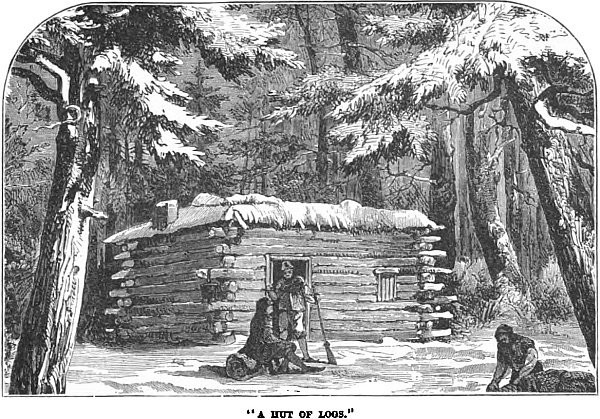 “But this forest life of ours was not so very pleasant when summer ended, and winter began to give token of his speedy approach. However, we determined to make the best of it. We built ourselves a hut of logs, and a rude stable for our horses, then we had to lay aside for a time our guns and fishing-rods, and instead of hunting, take to farming, and make hay while yet the sun shone. As long as the horses could be turned out lariated, they could find provisions for themselves, but when the snow fell, as fall it did ere long, we had to find fodder for them indoors.