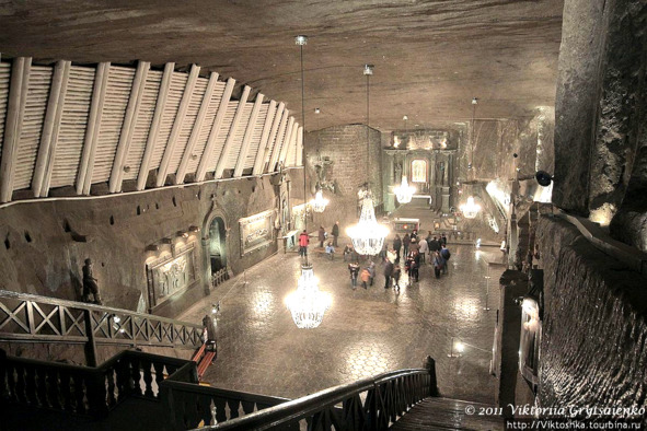 Теперь все это — и пласты, и скопления — пустоты. Выбранные пласты — галереи, выбранные скопления — залы. Некоторые из них огромны. Зал королевы Кинги, например, имеет длину пятьдесят, ширину шестнадцать, а высоту двенадцать метров. В нескольких залах — соляные озера. Залы посвящены легендам, национальным героям, в каждом скульптуры, вырезанные из соли, большинство из них религиозного содержания.