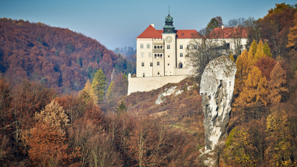В начале месяца состоялась очень интересная экскурсия в один из самых красивых рыцарских средневековых замков Польши на Песковой скале. Замок построен в готически-ренесансовом стиле при короле Казимире Великом. Стоит он на горе, и из окон открывается удивительно красивый вид. Экспозиция посвящена Средневековью — в основном это оружие и рыцарские доспехи. Находится он всего в 25 километрах от Кракова и считается одним из самых необычных в Польше. Представьте сооружение, разместившееся на горе и с трех сторон окруженное скалами. Король Казимир Великий, когда в 14 веке давал команду на строительство замка, четко представлял себе его предназначение: отслеживать передвижения неприятеля у границ государства, при необходимости сдерживать его атаки, а также вовремя предупреждать о наступлении супостатов.