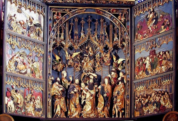 Ждать документы на территории консульства нам также не разрешили и выставили на улицу. Для меня это было неожиданно и очень неприятно, но в результате не пожалел. Консульство оказалось рядом с центральной площадью города — «Главный рынок». Мы вышли на нее и сразу разбились на две группы. Первая, огорчившись приемом, пошла знакомиться с питейными заведениями Кракова, а вторая, в которой оказался я, пошла знакомиться с достопримечательностями. Получилась импровизированная великолепная экскурсия. Не сговариваясь, сразу направились к Мариацкому костелу. Это оказалось так интересно, что провели в нем почти час. Зашли внутрь и были ошеломлены красотой алтаря. Он весь объемный, из скульптурных фигур, вырезанных из дерева и сделанных так качественно, что кажутся живыми. Не верится, что скульптор Вит Сквош вырезал их пятьсот лет назад, в ХV-м веке. Стояли у иконостаса мы плотной группой и, возможно, кое-кто с открытыми от удивления ртами. К нам подошла женщина, безошибочно определившая нашу национальную принадлежность, и на русском языке, но, правда, с сильным польским акцентом предложила нам рассказать историю костела. Мы с благодарностью согласились. Оказалось, что вся история состоит из нескольких красивых легенд.