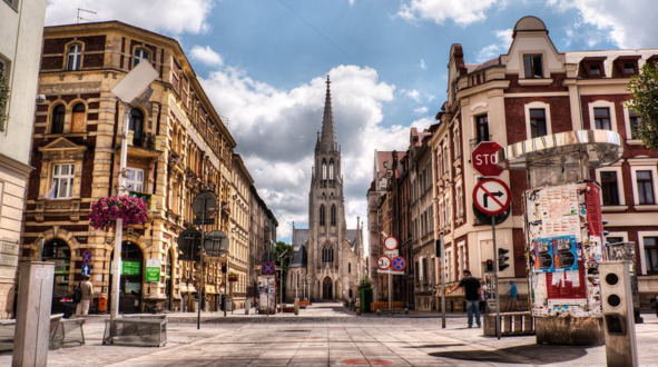 Надо сказать, что это очень интересный район Польши, здесь самая высокая плотность населения в стране. Шесть достаточно крупных городов находятся в непосредственной близости друг от друга — это Домброва-Гурница, Сосновец, Катовице, Хожув, Забже, Бытом. Они плавно перетекают один в другой, и между ними существует трамвайное сообщение. В сумме число жителей этих городов превышает миллион человек.