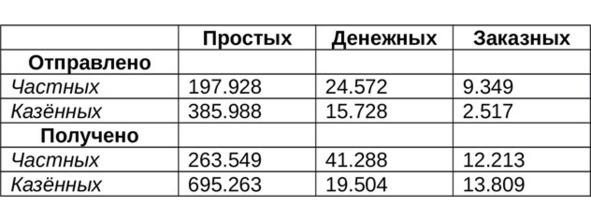 Таблица 2 иллюстрирует движение почтовой корреспонденции по одному лишь городу Тифлису за 1855 год. Она показывает развитие культурных потребностей населения кавказской столицы, по преимуществу военного и чиновничьего, с точки зрения охвата населения почтовыми услугами.