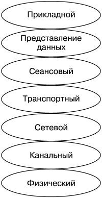 В зависимости от назначения уровни получили следующие названия: физический, канальный, сетевой, транспортный, сеансовый, уровень представления данных и прикладной (рис. 1.1).