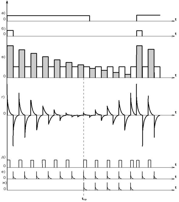 С момента сравнения tс на выходе схемы совпадений 15 появляется серия импульсов, которые поступают на счетный вход счетчика 17 (рис.2.2.ж).