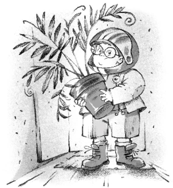 Месье Корусант живёт в маленьком нескладном домике, спрятанном в зарослях кустовых роз и дикого винограда. Мы нашли его в саду, с пробковым шлемом на голове и в таких широких шортах, что худые ноги выглядывали из-под них, точно палочки.