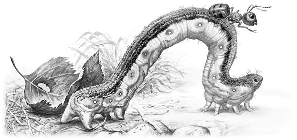 Смотрит Муравей: рядом Гусеница-Землемер лежит. Червяк червяком, только спереди – ножки и сзади – ножки.