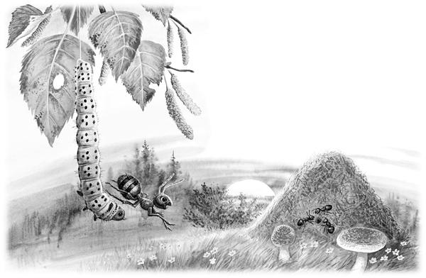 Залез Муравей на берёзу. Долез до вершины, посмотрел вниз, а там, на земле, его родной муравейник чуть виден.
