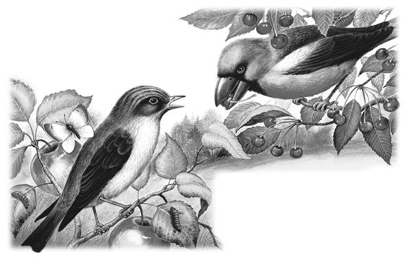 С утра до ночи птички шныряли по деревьям, заглядывали в каждую трещинку и скважину коры. Там прятались со своими личинками и яичками жуки-древоточцы, листогрызы, короеды.