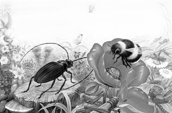 Обернулся Муравьишка – стоит рядом Жучок-Блошачок, чуть от земли видно.