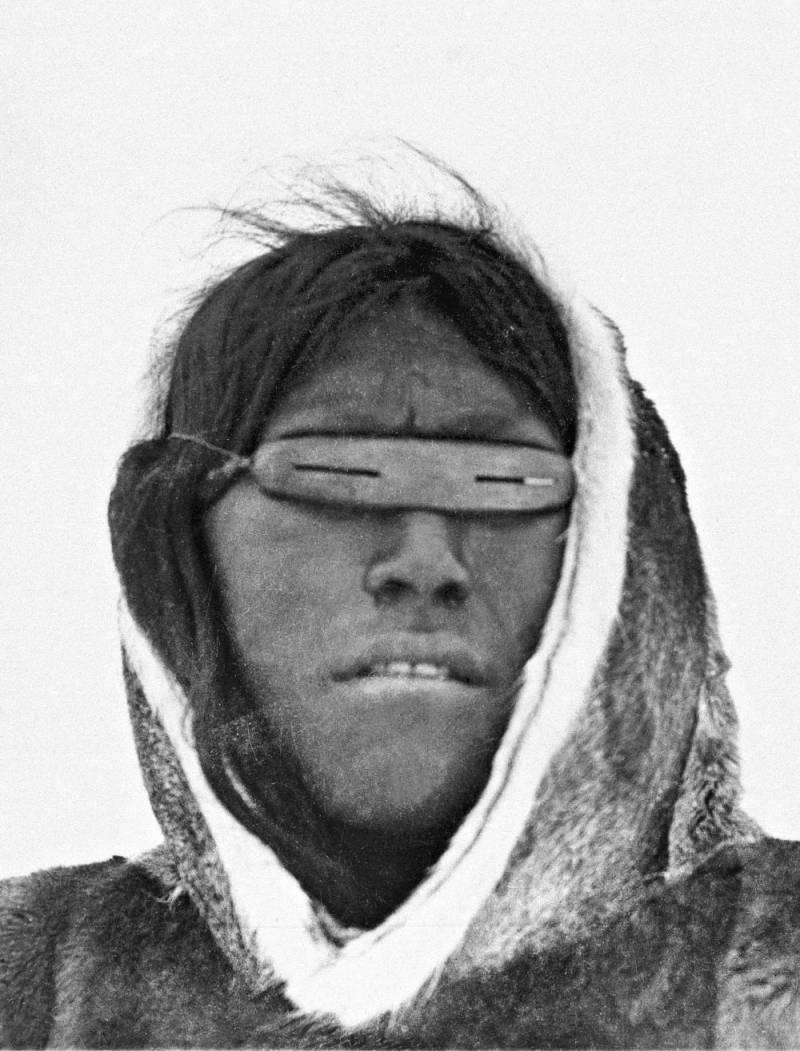 Кристаллы снега сами по себе прозрачны. Нам они кажутся белыми, потому что сначала поглощают, а затем отражают все цвета спектра примерно в одинаковой степени – этот же механизм работает в остевых волосках белых медведей[5]. Свежевыпавший снег под солнечным светом кажется особенно белым: тогда его отражающая поверхность особенно велика и усеяна мириадами мелких кристаллов. Когда солнце светит ярко, рекомендуется носить солнцезащитные очки, чтобы предотвратить снежную слепоту. Коренные народы Арктики придумали способ защиты роговицы от интенсивного коротковолнового ультрафиолетового излучения – узкий овал из кости или дерева, снабженный прорезью для глаз и украшенный орнаментом. Его привязывают к голове, чтобы защитить владельца от возможного непоправимого ухудшения зрения. Самые ранние известные образцы, найденные в западном прибрежном регионе Аляски, насчитывают две тысячи лет – можно сказать, что это первые в мире солнцезащитные очки.