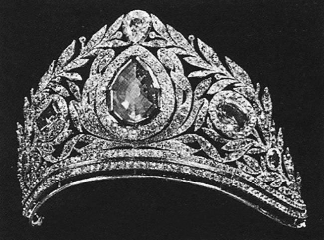 Однако дочерям великой княгини Екатерины Павловны от второго брака с вюртембергским королём Фридрихом-Вильгельмом I – ни старшей принцессе Марии-Фредерике-Шарлотте (1816–1887), вышедшей впоследствии замуж за графа Альфреда Нейперга, ни младшей Софии (1818–1877), взошедшей с мужем Вильгельмом III на трон Нидерландов, – любимая бабушкина диадема, видно, не приглянулась. Зато дивную тиару «из шести колосьев, в средине белой Сапфир и тридцать семь мелких груш Индейской грани» не преминули сразу же присоединить к русским коронным бриллиантам.[86]