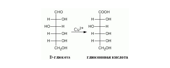 Мягкое окисление до альдоновых кислот. В горячих щелочных растворах моносахариды реагируют с некоторыми окисляющими агентами, такими, как Cu2+, Ag+ и Fe (CN)-, давая смесь продуктов окисления углевода и изменяя окраску окисляющего агента (Рисунок 11). В данных условиях окисляется альдегидная или кетонная группа. Эти окислительно-восстановительные реакции используются как тесты на восстанавливающие сахара, т. е. на углеводы с незамещенным аномерным альдегидным атомом углерода. D-Глюконовая кислота образуется в виде соли при взаимодействии D-глюкозы с гипоиодитами в щелочной среде. Эта реакция специфична для альдоз и используется для того, чтобы отличить их от кетоз.