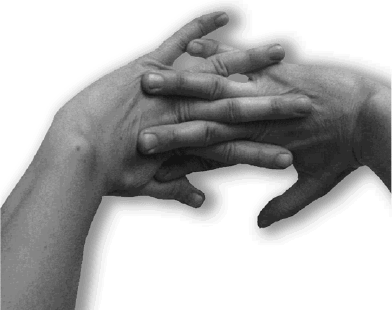 9. Кончиками пальцев обеих рук энергично постукиваем друг о друга, чтобы вызвать прилив сил (фото 1, е).