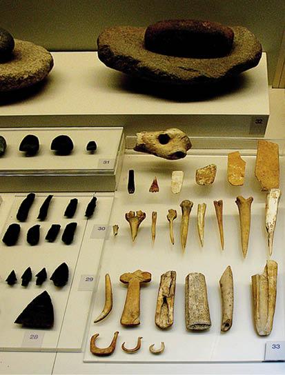 Обсидиановые и костяные орудия труда из пещеры Франхти. X–VII тыс. до н. э.
