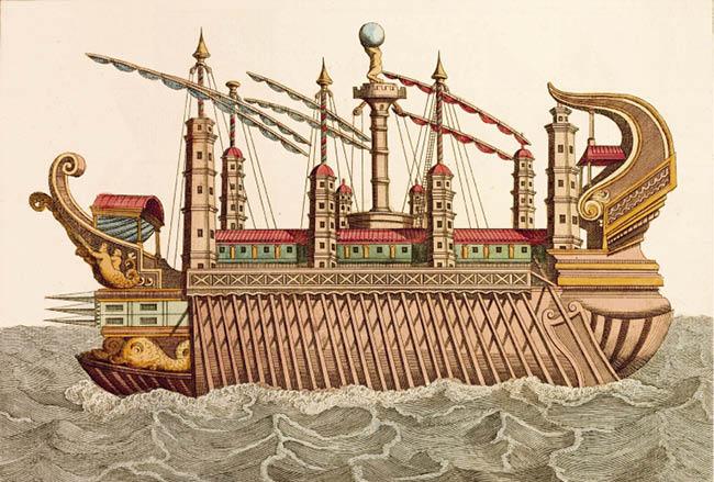 Корабль Калигулы. Гравюра. XVIII в.