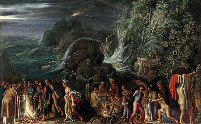 Адам Эльсхаймер. Апостол Павел и его спутники на острове Мелит (Мальта) после кораблекрушения. Ок. 1600