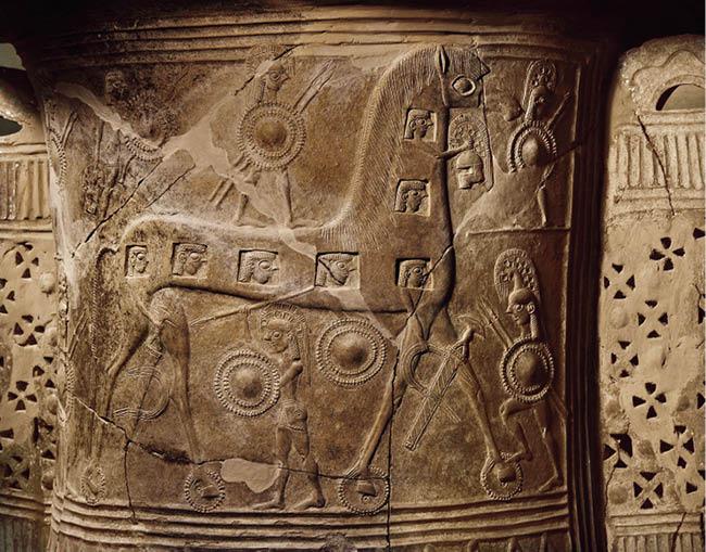 Подводные археологи не подняли из морских глубин ни одного критского судна той эпохи или каких-либо остатков подобных судов. В нашем распоряжении есть лишь несколько рисунков и небольших моделей, но правильно определить, что они изображают, не так-то легко. В музее Ираклиона [2] (Крит) выставлен небольшой (30 см) продолговатый предмет из глины, найденный в Палекастро (Крит) и датированный третьим тысячелетием до нашей эры.