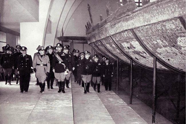 Бенито Муссолини в музее кораблей в Неми. 1930
