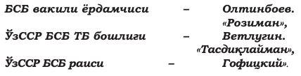 Мазкур иш Ўзбекистон БСБда кўриб чиқилиши учун қабул этилсин. Иш ЎзССР БСБси Республика тергов бўлимида рўйхатга олинсин ва унинг юзасидан тергов амалиётига киришилсин. Бу ҳақда Ўрта Осиё БСБси назоратини амалга оширувчи прокурорнинг катта ёрдамчиси хабардор этилсин, унга ушбу қарор нусхаси юборилсин.