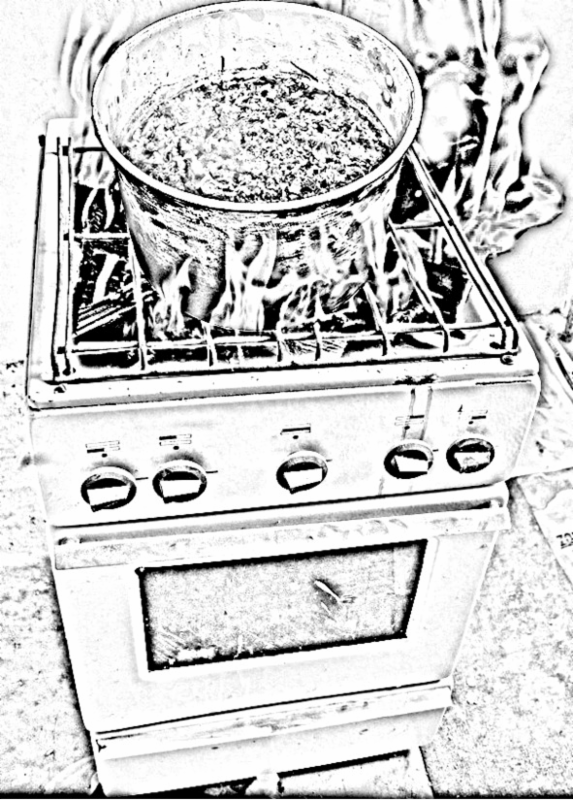 Задумался как готовить пищу, если газа нет, ведь макароны и крупу сырыми есть не очень. По прошествии двух недель, когда были съедены все запасы, что можно было есть не готовя, я на лоджии из газовой плиты что стояла на кухне сделал печку, где, закрыв плотно дверь в квартиру и открыв настежь окна лоджии, из мебели и тряпок разводил костёр, на решётку от газовой плиты устанавливал большую кастрюлю с крупой или макаронами, которые отваривал. Жидкость после варки пил как бульон, а в кашу или макароны строгал вяленное мясо, добавлял соусы или под конец капал подсолнечного масла и так питался. Не в ресторане конечно, но вполне съедобно, а когда специально ешь раз в сутки так вообще объеденье. Буквально месяц назад такое и есть бы не стал, а сейчас уплетал и не морщился. Самое интересное, что на такой диете я совершенно не похудел, может пару кило скинул, но для моих ста килограмм при росте сто шестьдесят восемь сантиметров это совсем незаметно.