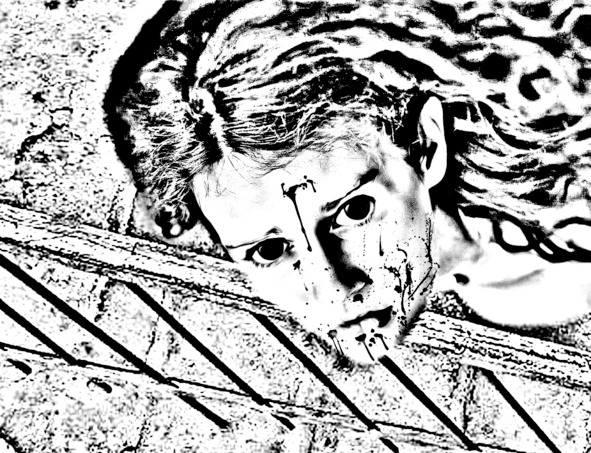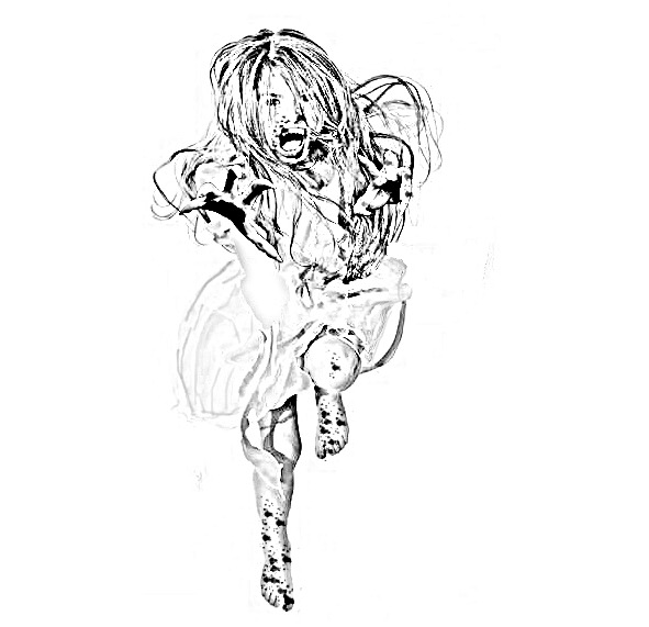 В дверном проёме появилась девочка, лет девяти десяти, в ночной пижаме в голубой горошек, босая. Она осторожно вышла на лестничную площадку и уставилась на меня своими голубыми глазами. Одна деталь, в этом ребёнке была явно ненормальной, её губы, нос, щёки от подбородка до груди пижамы были испачканы чем-то коричневым и высохшим, и я не хотел думать, что это кровь. Глаза девочки смотрели на меня так же безразлично как глаза Виктории рыжеволосой суки, что охотится на меня, в этом взгляде совершенно не было эмоций как будто она смотрит в пустоту или на червяка, насекомое. Я не решался нажать рычаг огнемёта, так как она не нападала, а просто стояла и смотрела на меня, от чего мне становилось не по себе. Я спустился по лестнице, на несколько ступеней, в её глазах появилось любопытство.