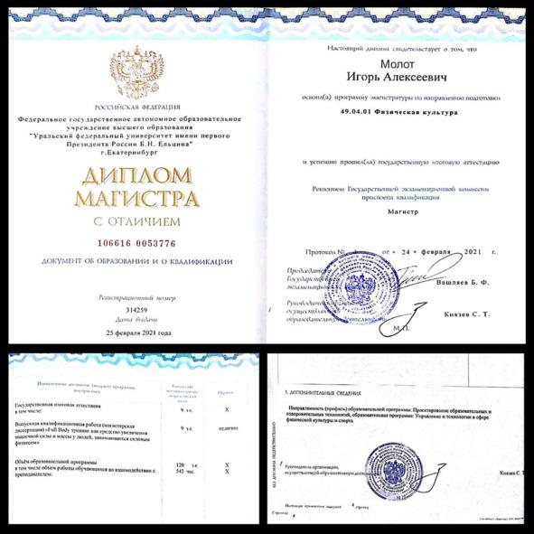 — красный диплом магистра по физической культуре и спорту на тему «Full Body тренинг как средство увеличения мышечной силы и массы у людей, занимающихся силовым фитнесом».