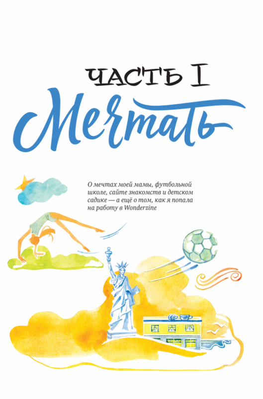 В книге четыре части, посвящённые собственно мечтам, учёбе, работе и личным отношениям — но это очень условное, приблизительное деление, позволяющее чуть систематизировать текст. Я хочу рассказать о своей жизни, о том, как ничего не бояться и начинать с нуля. О том, как я научилась дорожить дружбой. О том, каково это, когда приходит письмо с требованием покинуть страну в течение 15 дней и единственный выход — не паниковать, а срочно выучить ещё один язык и поменять паспорт. О том, как я находила работу в стране, известной на весь мир высоким уровнем безработицы. О том, как менялись мои представления о красоте. О том, что все люди разные и чем больше путешествуешь, тем больше расширяются границы твоих представлений о норме. О том, что терпение и вера действительно помогают и иногда ты ловишь себя на том, что вот уже давно живёшь в новой квартире, а ведь недавно казалось, что поиск никогда не закончится. О том, как семья стала самым важным в жизни, не вытеснив ни друзей, ни работу, а только расширив возможности и придав смысл вообще всему.
