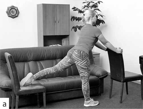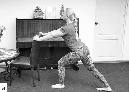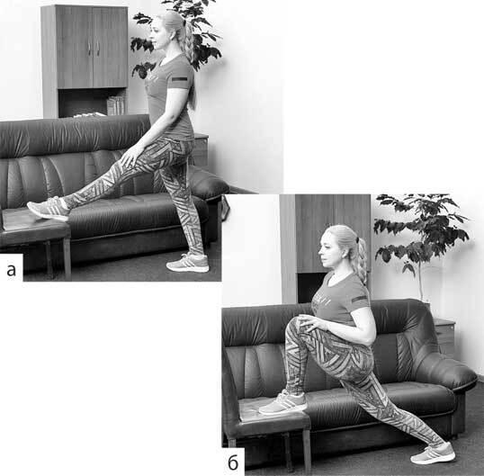 • растяжку ахиллова сухожилия: упор руками в стену и растяжение трехглавой мышцы и ахиллова сухожилия, фото 5 (а, б).